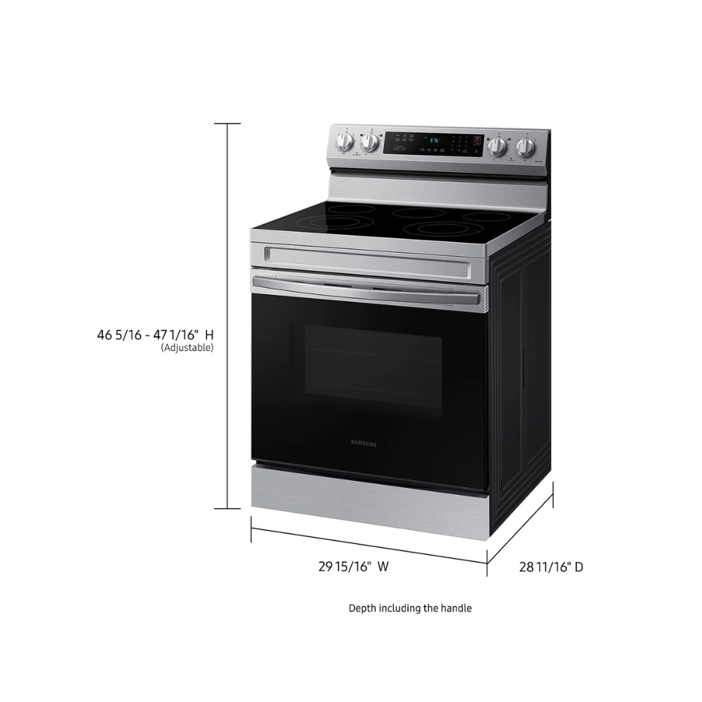 Dimensions: 29 15/16″ W x 46 5/16″-47 1/16″ (Adjustable) H x 28 11/16″ D Oven Capacity: 6.3 cu. ft. Self Clean Wi-Fi 3300 W Rapid Boil™ Burner Self and Steam Clean